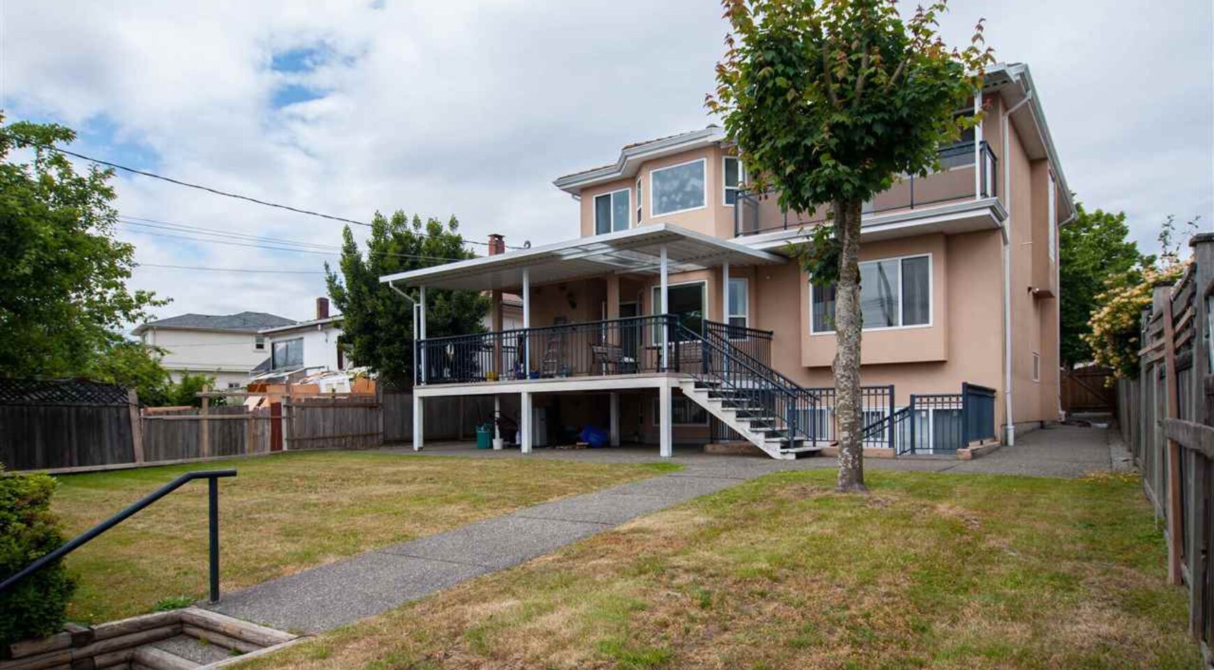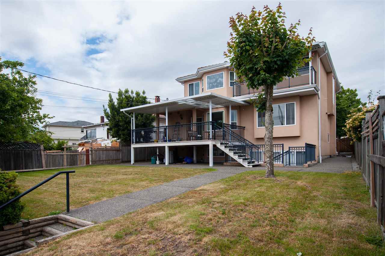 Prestigious Fraserview estate w/panoramic views sitting on 7050 SQFT FLAT lot. From the grand open-entry w/huge roman pillars to the home’s interior w/fine details, materials & craftsmanship, this 3 -level executive home emphasizes on size, views, security, entertainment & convenience. Expansive living spaces, 9′ ceilings throughout main & a huge covered deck w/access to private yard. Large media & recreation room for entertainment. Bathrooms above all have ensuite; jacuzzi/steam shower in master. Other inclusions: built-in VAC, A/C, sauna, alarm, wet bar & in-floor heating on all floors. Excellent school catchment at Oppenheimer Elementary (3 min-walk) w/transit nearby.